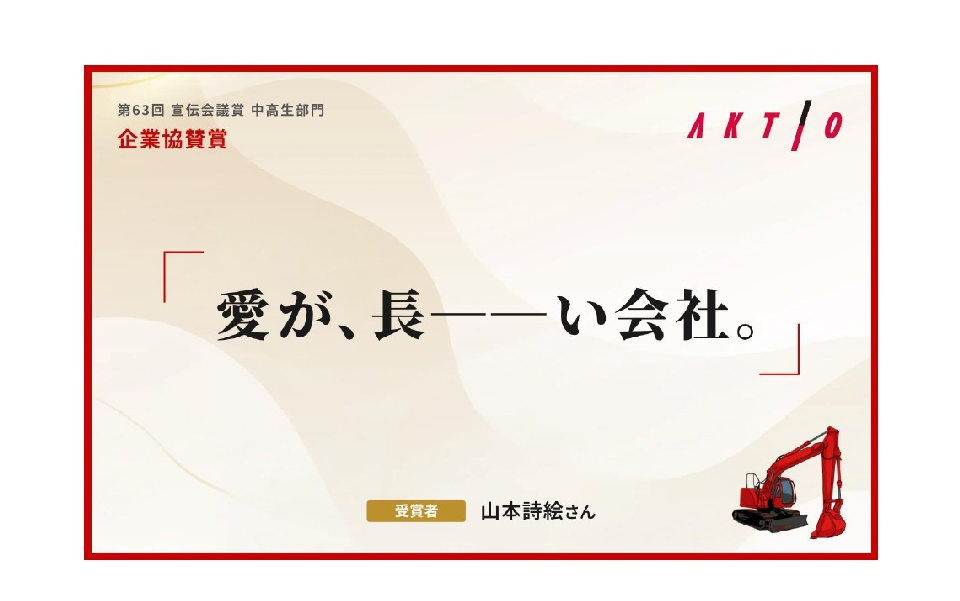 アクティオ(本社:東京都中央区日本橋、代表取締役社長兼 COO:小沼直人、以下アクティオ) は、宣伝会議が主催する「第63回 宣伝会議賞」の中高生部門に協賛し、「建機レンタルのアクティオの魅力を伝えるアイデア」を募集しました。