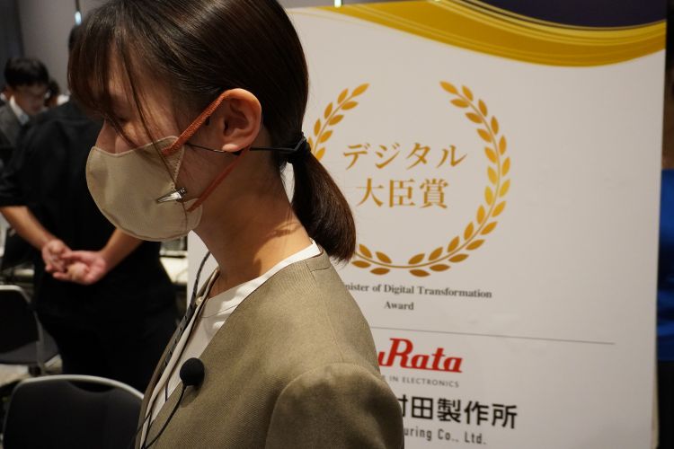 デジタル社会での豊かな暮らしと社会づくりへの寄与を評価するデジタル大臣賞は、村田製作所(展示ブース:General Exhibits 2H325)の「AI 時代の信頼できる音声入力を実現するマスク装着型デバイス mask voice clip 」が受賞した。大規模言語モデル(LLM)の進化により、自然言語での操作や記録・入力業務を行う未来が現実味を帯びる中、このデバイスはその前提となる「信頼できる音声入力」を構造面から実現。マスク表面の微細な振動を圧電フィルムセンサで検出することで、騒音下や複数話者が同時に発話する環境でも、話者本人の音声のみをリアルタイムかつ高精度に抽出することが可能。医療・製造・保守点検など、多様な現場でのAI活用を後押しする技術という。