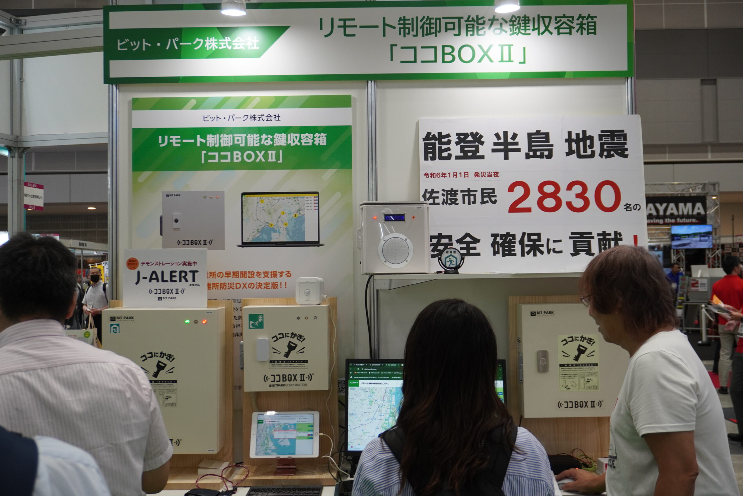 ビット・パーク(東京都目黒区、野口修代表取締役)は、「危機管理産業展(RISCON TOKYO)2025」内『東京都中小企業振興公社ブース』に出展し、避難所の早期開設を支援する「ココBOXⅡ」などを展示紹介した。「ココBOXⅡ」は、避難所や防災庫の鍵を保管するボックスを、緊急時にパソコンやスマートフォンからリモート解錠できる「ココBOX」の新タイプで、Jアラートに対応している。動作状況がひと目でわかる管理画面とあらゆるセンサを組み合わせ、災害発生時のスムーズな避難所開設を支援する。管理画面とともに避難所開設を知らせるメール通知機能や避難所チェックリスト、予備バッテリー監視など充実した防災DX機能を実装した。