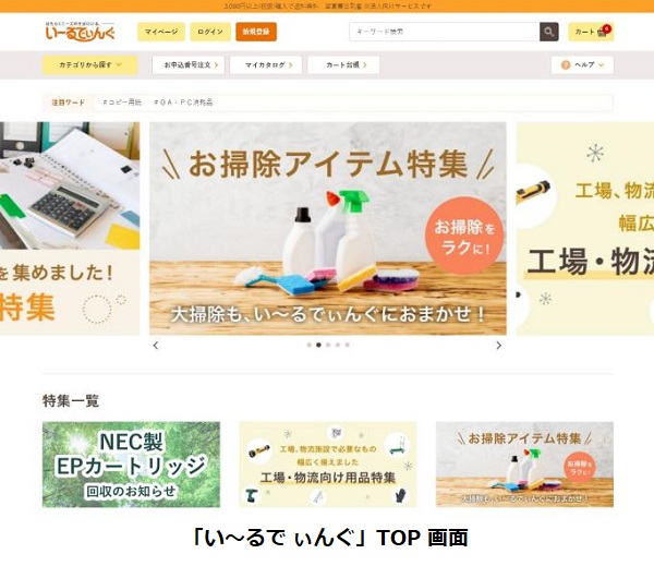 今回の刷新によって、操作性や安全性を向上、お客さまにより快適に利用いただけるECサイトになる。「い〜るでぃんぐ」は、NEC製IT機器の消耗品や、他社のPC/OAサプライ、文具・生活用品、オフィスセキュリティ、防災用品、介護・ヘルスケア用品など、顧客の”要る”に対応する商品を豊富に取り揃えている。入会登録料/年会費無料で、さまざまな商品を購入できる。