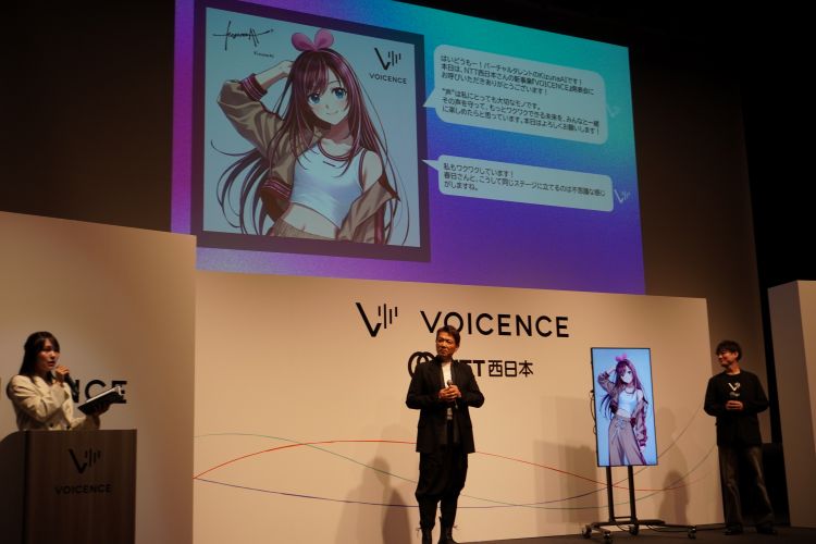 東京都渋谷区神宮前一丁目の「WITH HARAJUKU HALL」で開催された記者会見では、NTT西日本の北村社長、VOICENCEカンパニーの花城CEOのほか、事業に賛同するパートナーとして、俳優で株式会社ビジュアルボイス代表取締役社長を務める別所哲也さん、声優の春日望さん、春日さんが音声を担当するバーチャルタレント「KizunaAI」さんが出席し、デモ等を披露。また声優の花江夏樹さんも音声によるメッセージで参加した。