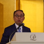 乾杯のあいさつとして、筆頭副会長の新野隆NEC取締役会長が登壇し、「午年の年男として走って走って走り抜けたい。デジタル化加速のギアを上げるアクションの一つはCEATEC。単なる展示会でなく社会実装に向けた挑戦を発信し共創を生み出す中核事業。昨年は10万人が来場した。今年も多くの出展をいただき次のビジネス、連携を生み出して社会全体のデジタルトランスフォーメーションを会員一丸で進めていきたい」と呼び掛けていた。