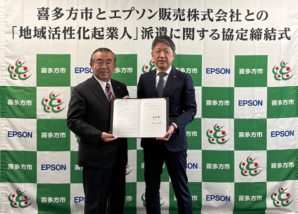 エプソン販売株式会社と福島県喜多方市は、総務省が推進する「地域活性化起業人制度」に基づき、喜多方市への社員派遣に関する協定を締結した。