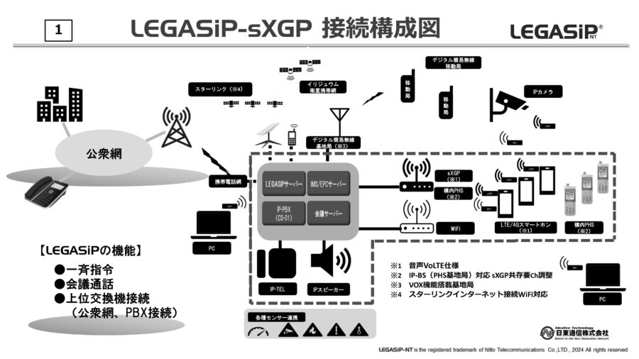 我々の技術を使えば、山奥や孤立した被災地にLEGASiPのセットと衛星アンテナをポンと置くだけで、そこが即座に世界と繋がる通信拠点になる。キャリアの地上基地局が全滅しても、衛星をバックボーンにして内線通話も外部通話も、さらにはWi―Fi経由でのLINE通話まで可能にする。これが今後の防災・減災における「究極の解決策」の一つになると信じている。