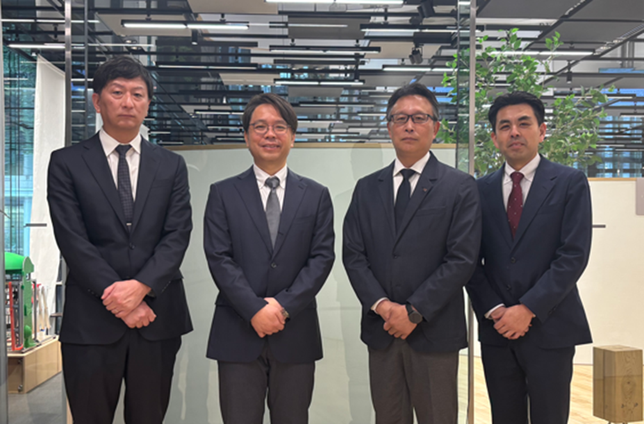 写真は (左から)Spectee 取締役CFO 池田 尚弘氏、Spectee 代表取締役 村上 建治郎氏、 東芝デジタルソリューションズ 取締役常務 月野 浩氏、東芝デジタルソリューションズ ICTソリューション事業部 データ事業推進部 ゼネラルマネジャー 矢崎 貴久氏