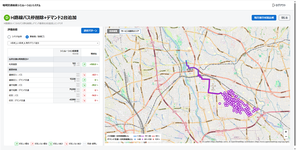 このシステムは、バスなど定時運行型とオンデマンド型交通を組み合わせたシミュレーションを用いた交通計画策定における国内初の取り組みとして開発された。一般的に利用可能な住民属性や移動、目的地に関する統計データやMaaSアプリから取得可能な乗降実績に関するデータを活用して、人や社会の振る舞いのシミュレーションを行い、施策の事前検証を効率化する。