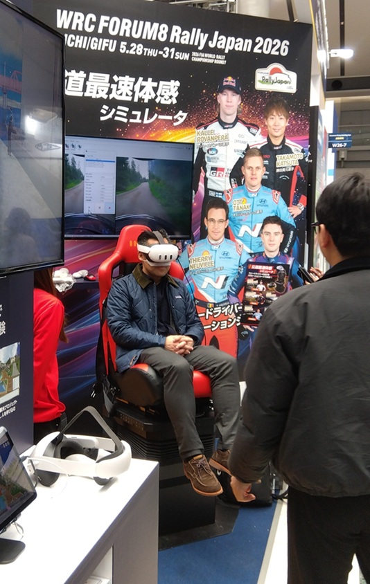 本VRモーションシートにより、プロドライバーの運転疑似体験等に活用することができる、と話した。